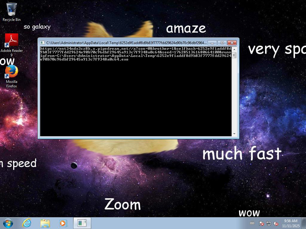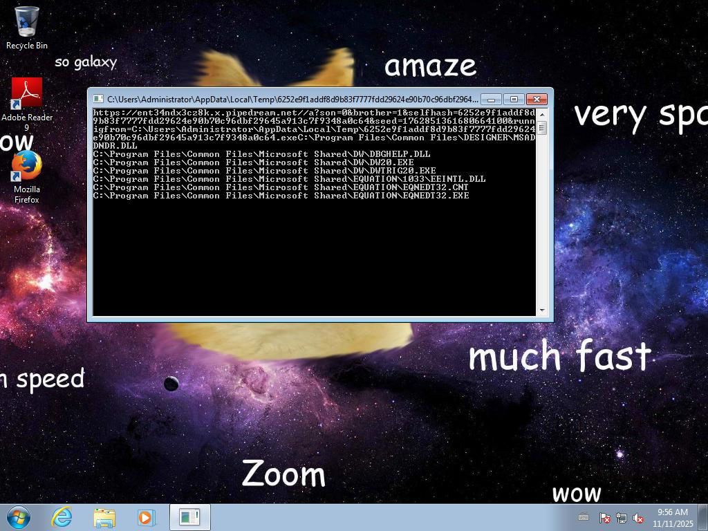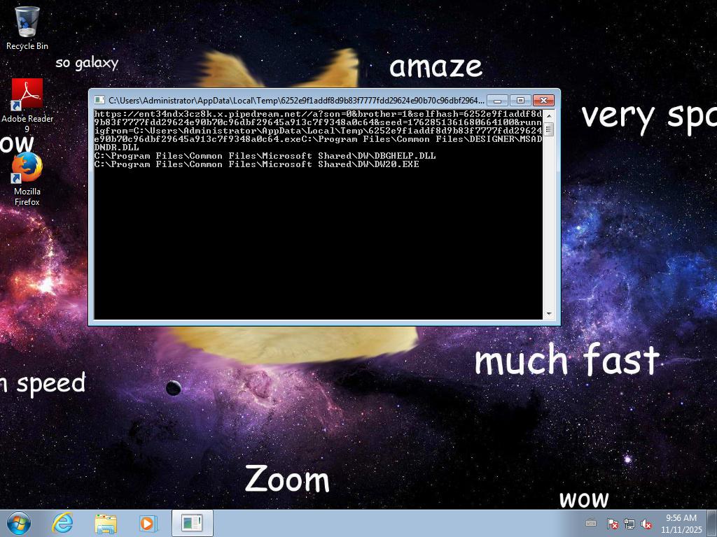 2025-11-11 09:56:00,858 [lib.api.process] INFO: Successfully executed process from path u'C:\\Users\\ADMINI~1\\AppData\\Local\\Temp\\6252e9f1addf8d9b83f7777fdd29624e90b70c96dbf29645a913c7f9348a0c64.exe' with arguments '' and pid 2848